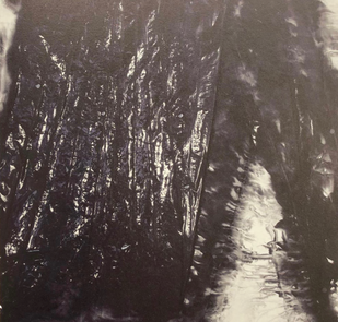 The titles of Zheng’s works are frequently suggestive of landscapes, geological and atmospheric phenomena. In the present exhibition we see titles such as Salt,Ecliptic Moment, Deconstructed Rock, Distanced Lights, Coriolis Path, and In-between the Land. But these should only be viewed as evocative starting points as we engage with the paintings, given that the works are not representational in any literal sense. The artist himself describes his works as “semi-abstract” - his is a vocabulary of light and space effects, often featuring landscape, biomorphic and anthropomorphic elements, but always suggestive, and never reaching the threshold of explicit representation, never representing a single perspective or even a singular or stable set of dimensions. Zheng’s images are thus always open to multiple “takes” or interpretations and the viewer’s imagination inevitably plays an important role in constructing, filtering, reconciling (or not) the multiple views, takes and dimensions at play. It is important to note that Zheng’s “monochrome” works are never exactly black and white. Each contains a rich spectrum of tonalities ranging from sepias, to bluish greys, deep indigos, and many gradations towards an absolute black which is never finally achieved. Some of these effects are the result of the dilution of the ink used, some the product of the way the ink is absorbed and filtered by the xuan paper. Many of the blue tonalities result from the interaction with the white acrylic paint - either ink on acrylic or acrylic on ink. When concentrated and layered, the ink creates subtle refractive effects as it forms